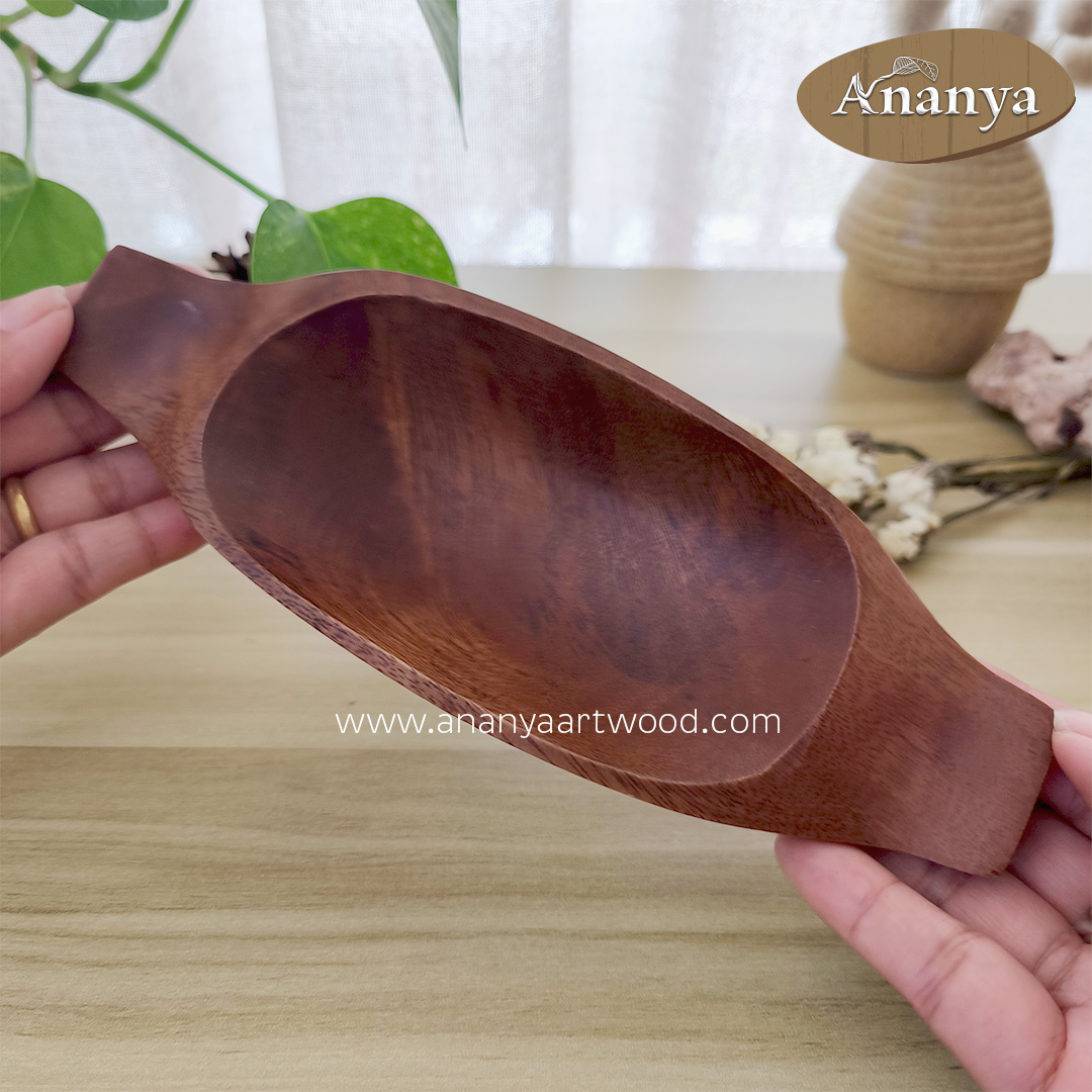 Sail into a new world of serving with this truly unique boat-shaped wooden dish. Handcrafted by skilled artisans from Thailand, this piece is more than just a plate; it’s a conversation starter. Made from durable and beautiful teak wood, it’s perfect for presenting appetizers, nuts, candies, or even as a decorative centerpiece on your coffee table. The natural grain and warm tones of the wood give each piece its own distinct character. This eco-friendly and stylish dish is a perfect blend of rustic charm and modern design, making it a must-have for those who appreciate authentic, high-quality craftsmanship.